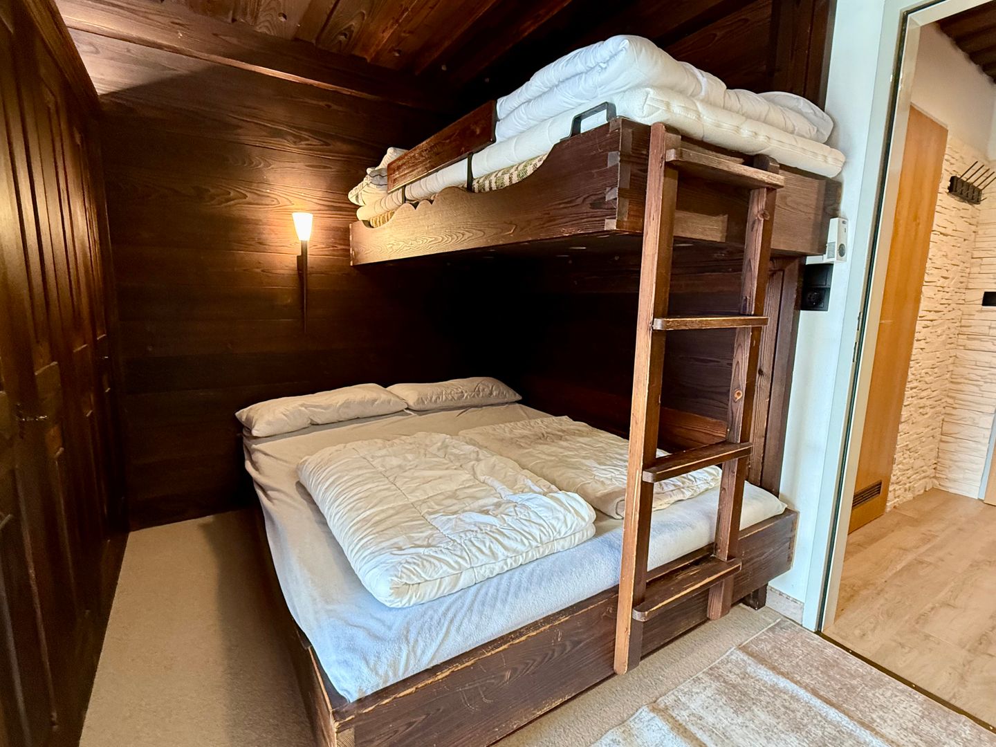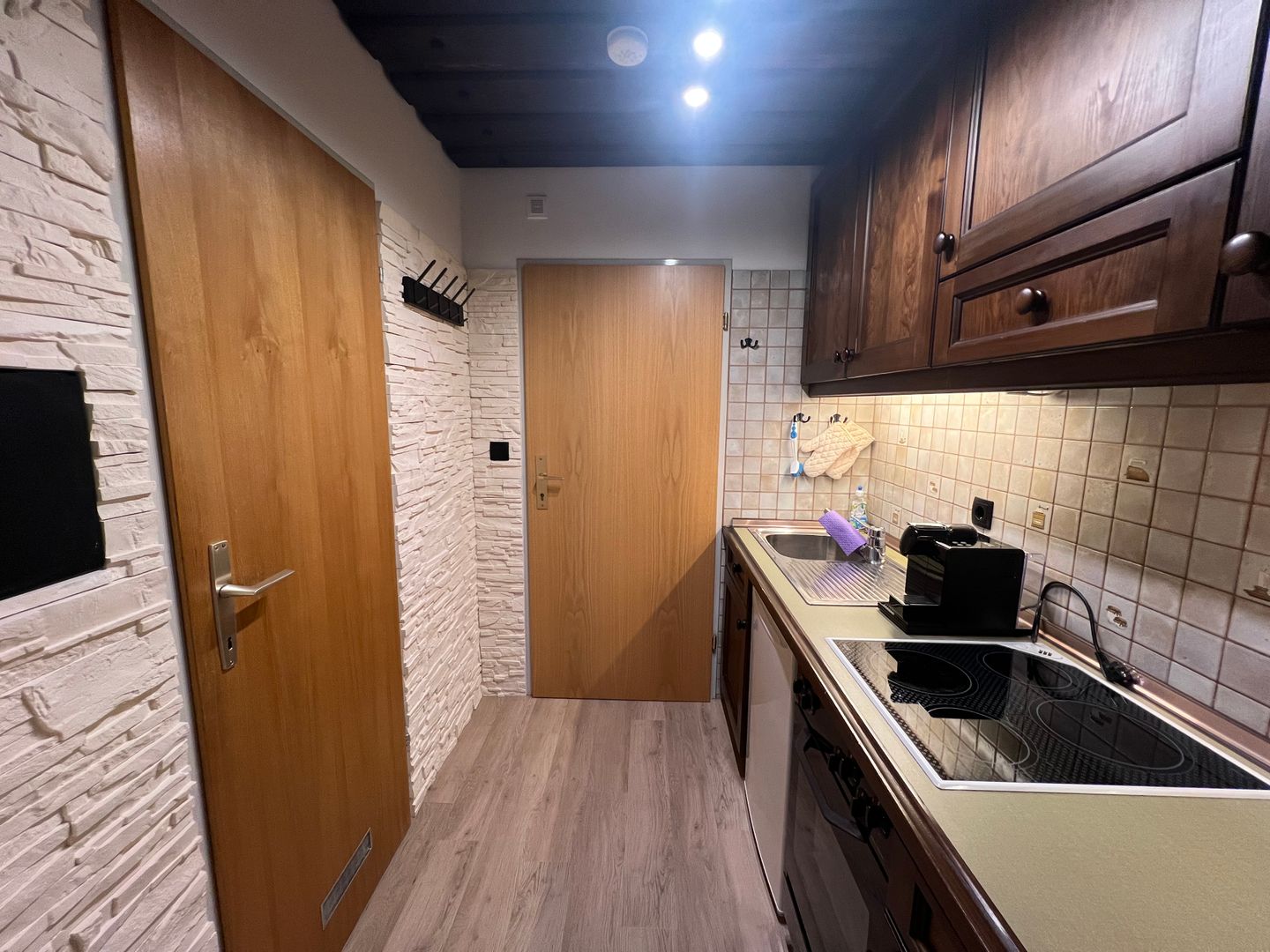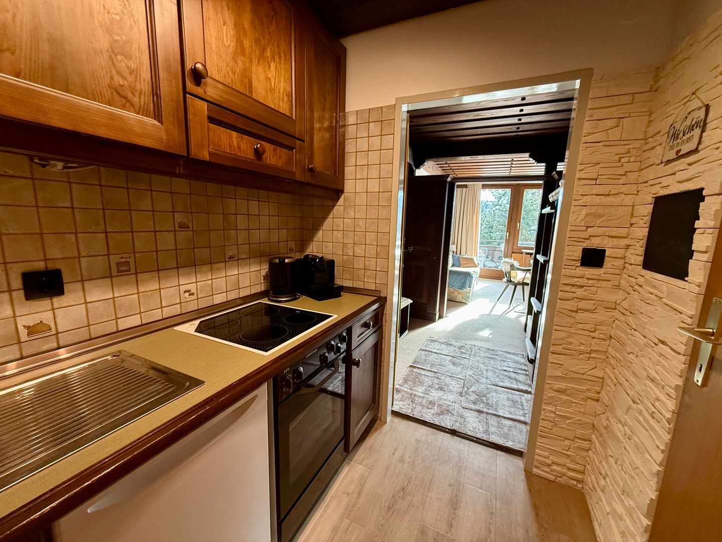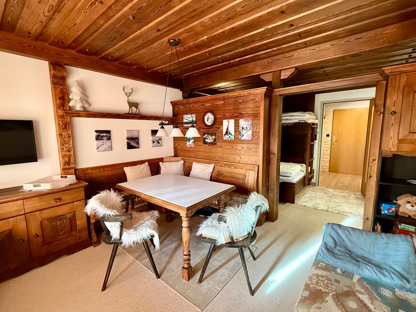 1x Doppelbett für 2 Personen (einteilige Matratze) aus Massivholz, sowie ein einzelnes Stockbett für 1 Person darüber; Essecke, gemütliches Sofa (ausziehbar), Flachbild-TV, DVD-Player, Spiele für die ganze Familie; komplett ausgestattete Küchenzeile mit Nespresso-Kapselmaschine, Wasserkocher, Kühlschrank mit Gefrierfach, 4-Platten-Ceranfeld und Backofen; Badezimmer mit Dusch-/Badewanne und WC, Haartrockner; Terrasse südseitig mit Tisch und Bänken; Liegestühle und Sonnenschirm sind auf der Terrasse Sommer wie Winter zur Verfügung. Parkplätze am Gebäude.